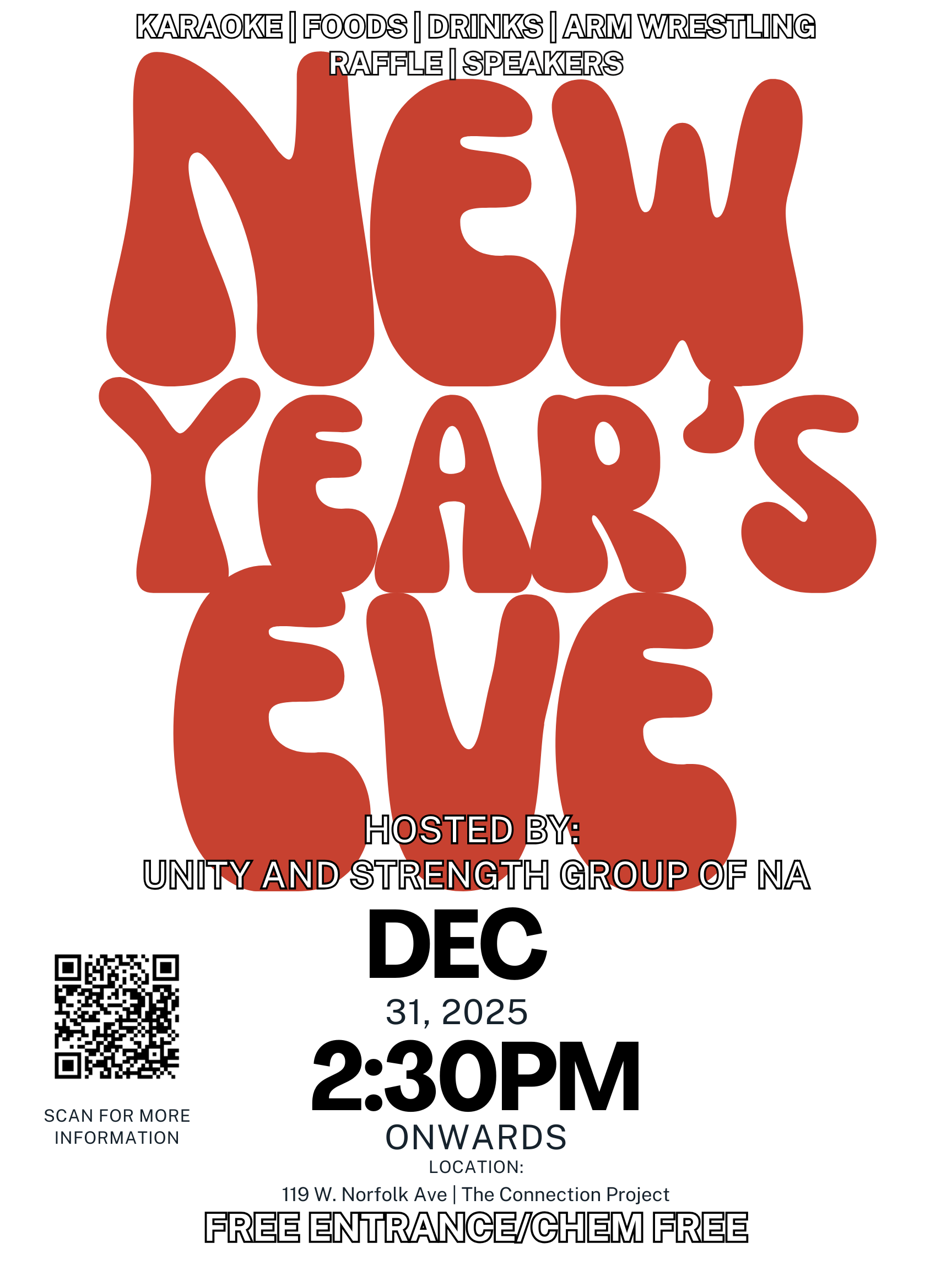 The Unity & Strength Group of Narcotics Anonymous will be hosting a New Year’s Eve fellowship gathering on December 31 in Norfolk, Nebraska. This event is intended to provide a chem-free space for connection, recovery, and fellowship as members and friends come together to close out the year.